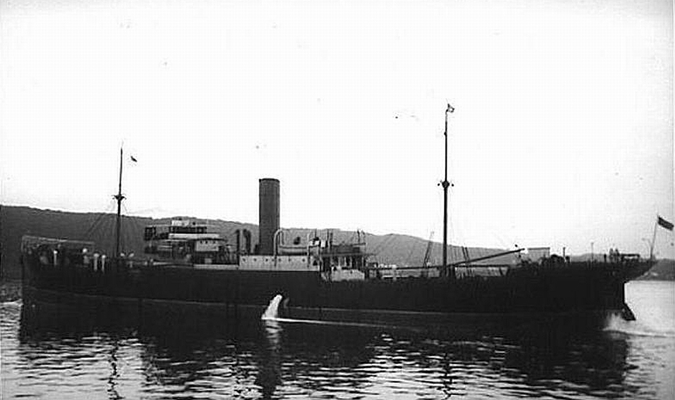 A British steel steamship the SS Cape Ortegal was built for Lyle Shipping Co., Ltd., Glasgow by Russell & Co., Port Glasgow in 1911. She was sold twice in 1936 – first to Heston Shipping Co., Ltd. (J. C. Radcliffe), Glasgow; then to Bantham SS. Co., Ltd. (Evans & Reid), Glasgow. In 1937 she was taken over by Constants (So Wales) Ltd. She was sold to Metal Industries for scrapping in 1939 but was requisitioned by the Admiralty before she was broken up. She was sunk as a blockship in Skerry Sound on the 8th September 1939, but it is reported that she rolled over and broke up in the first of the winter storms. Cabinet papers for February 1940 (CAB/65/56 in the Public Records Office) indicate that the wreck ‘’rolled off into deep water’’